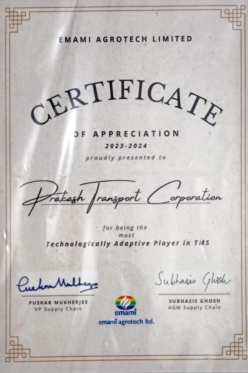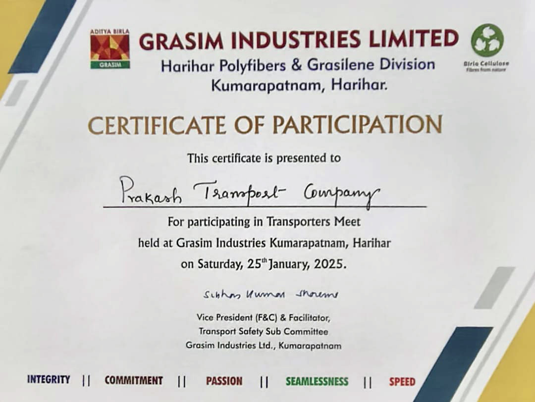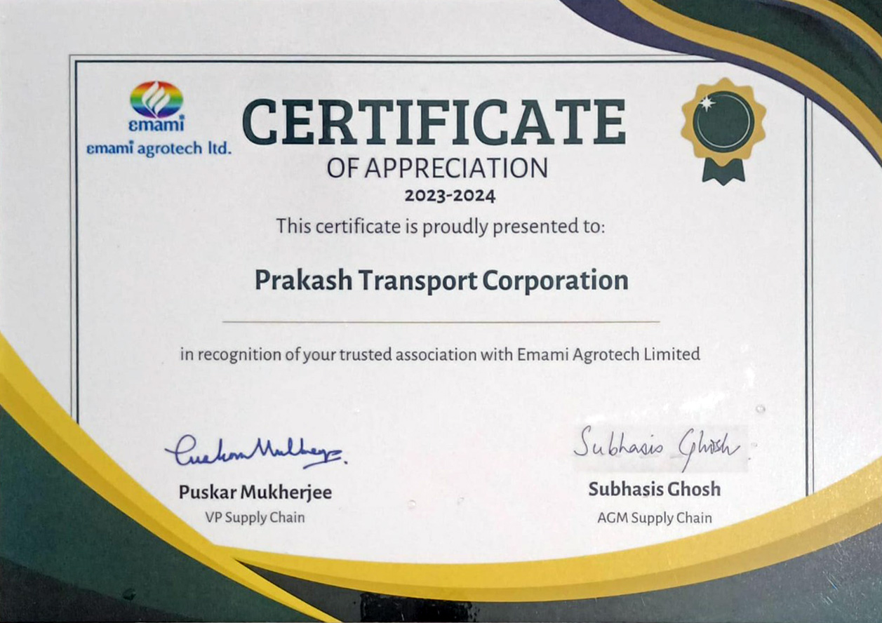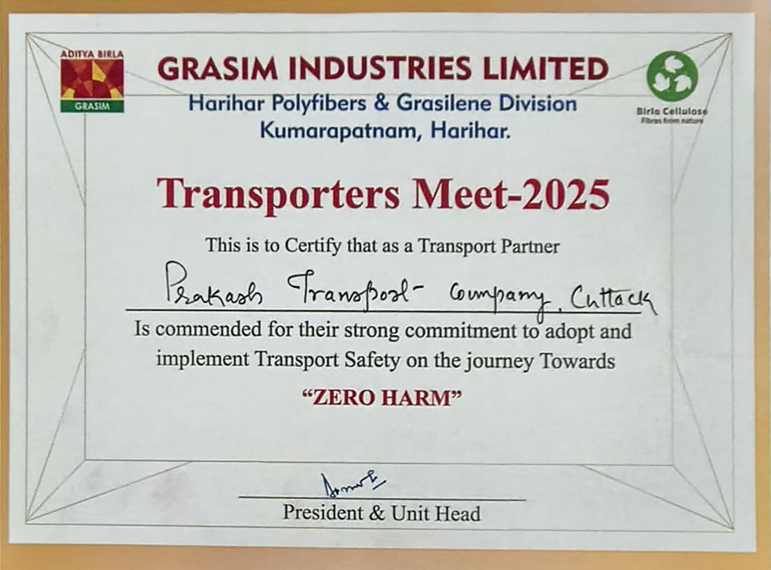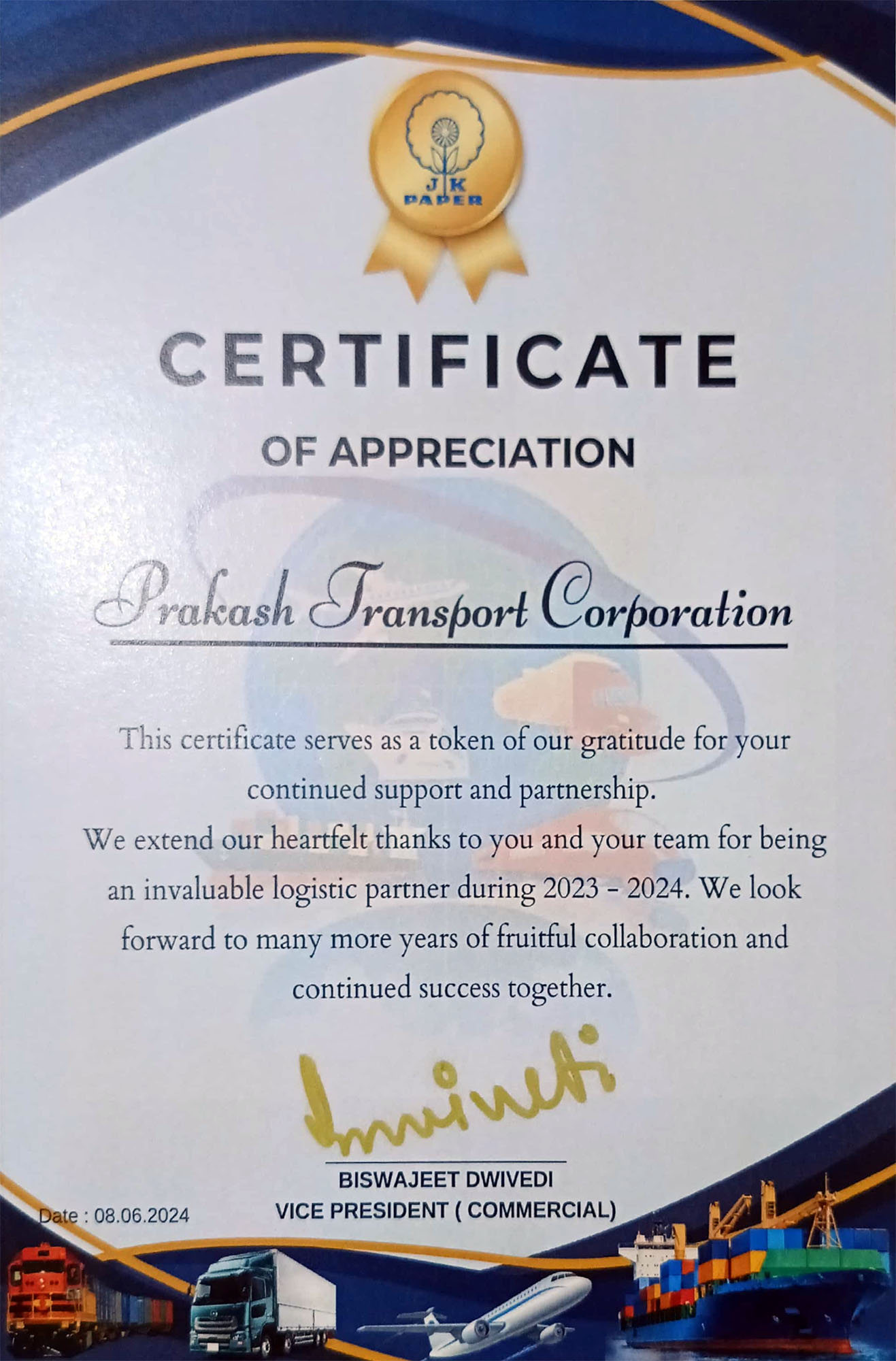 Prakash Transport Corporation is committed to high standards of quality and safety. Our company holds several key certifications that show our dedication to reliable service: